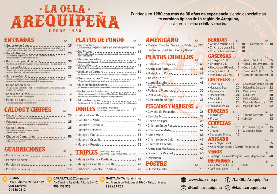 | Sitio Web | https://www.facebook.com/LaOllaArequipena/ |